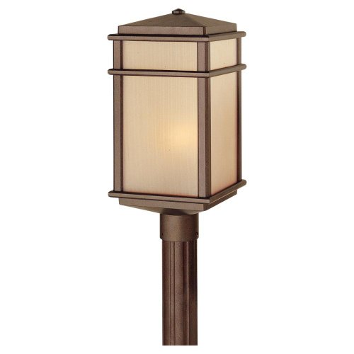 Finish:Corinthian Bronze, Glass:Amber Ribbed, Size:19' h x 9' w square, Light Bulb:(1)150w A21 Med F Incand This exterior post light from the Mission Lodge Collection is designed to fit over a 4x4 wood deck post or be mounted directly on a pier or 3' diameter post (sold separately).